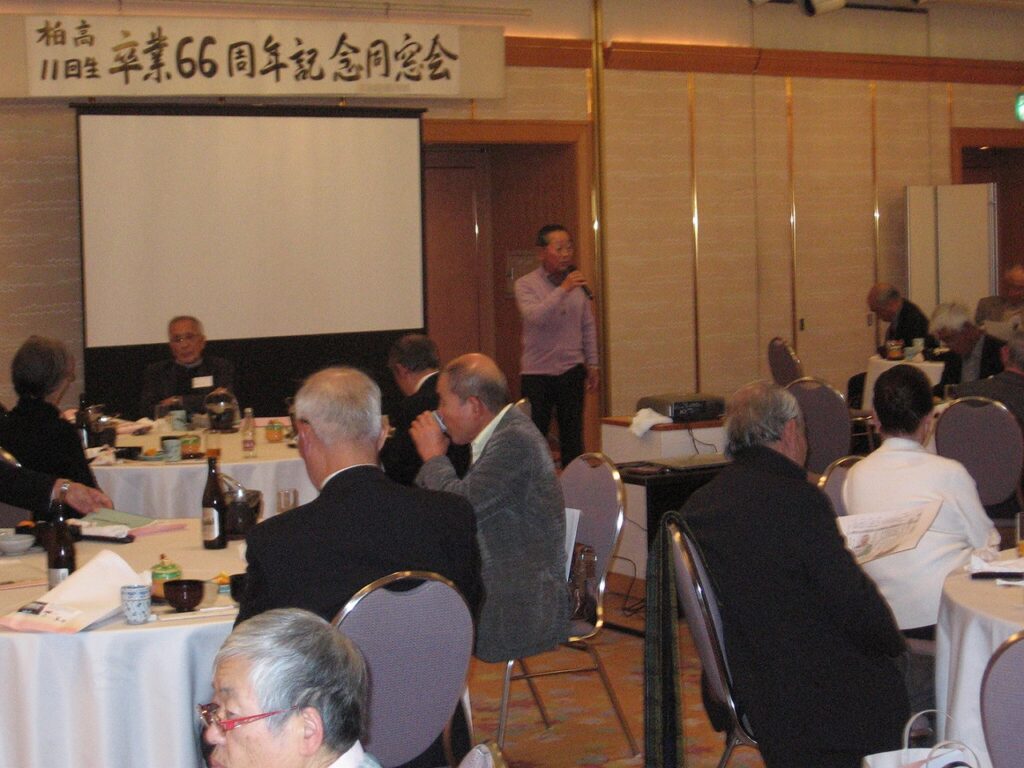場がにぎやかになり、それではと特技を披露する者も出てきて、~国破れて山河あり~と詩吟を披露する者、ゴッドファーザーの愛のテーマを歌い出す者、舞台に上がり高校卒業から今日までの生活を語り出す者など大にぎわいの会となった。