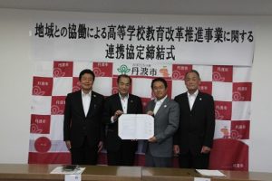 丹波市内の柏原、氷上、氷上西の県立3高校と丹波市が27日、協力して地域課題の解決に向けた研究を始めるにあたり、市役所で連携協定の調印式を開いた。市は情報提供など、生徒の研究を助け、生徒は成果を市に発表する。 柏原高校…